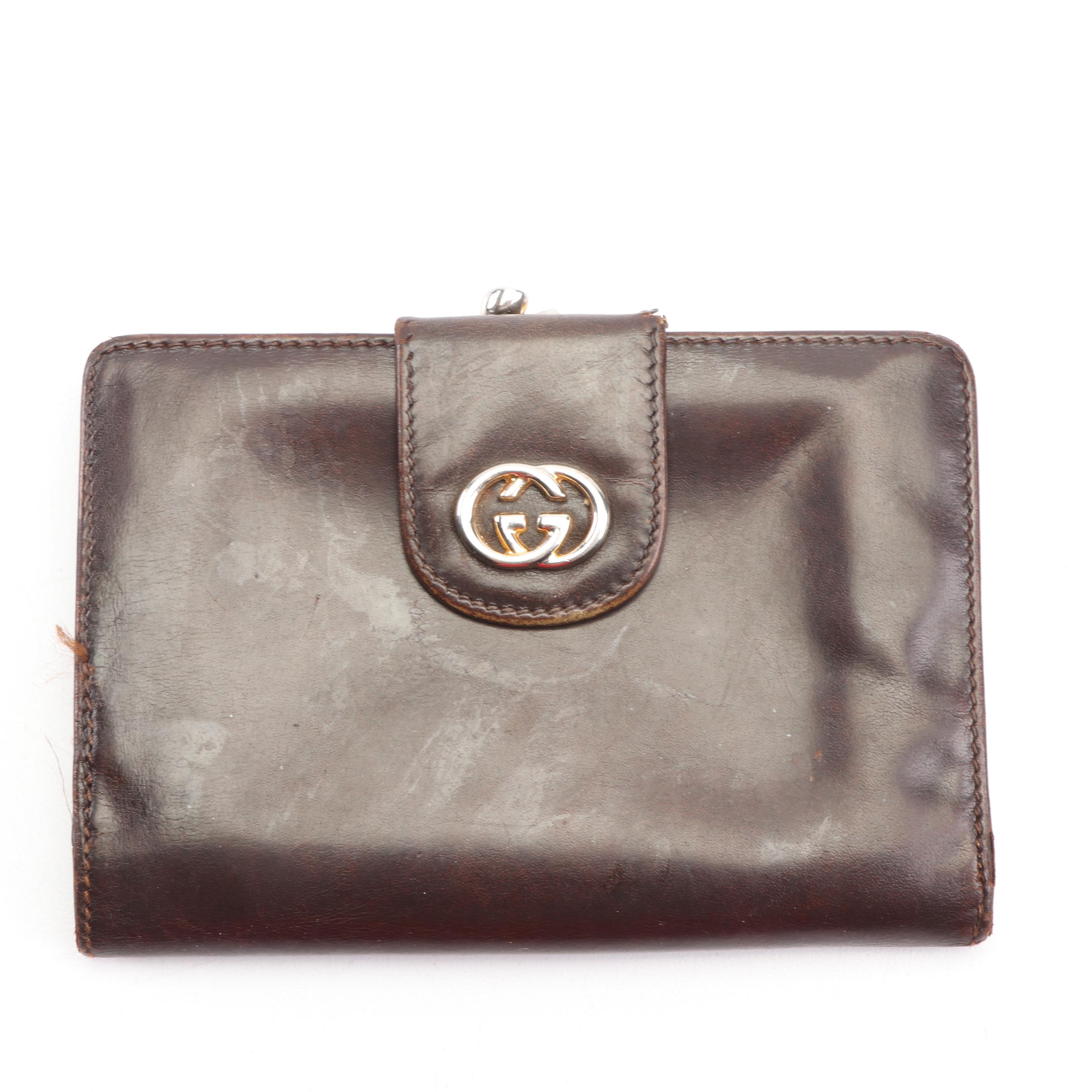 Gucci Brown Leather Wallet Made In Italy Ebth